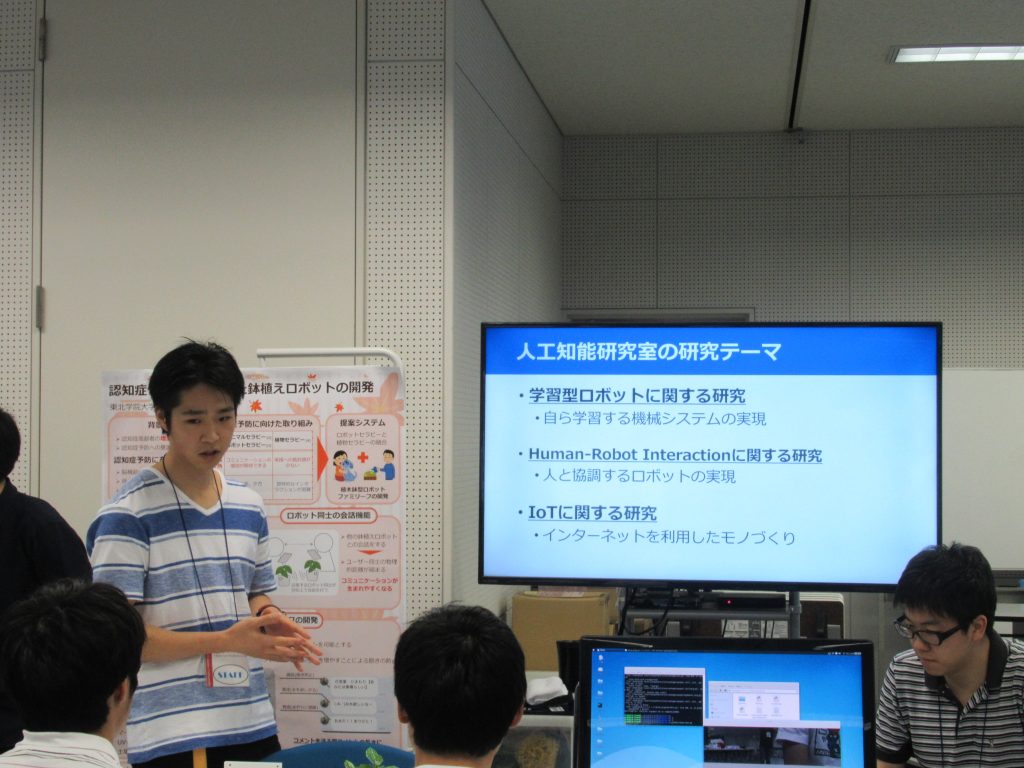 7月のオープンキャンパスで研究室展示をしました 投稿者: | 2019年7月28日 0件のコメント 7月27,28日に開催されたオープンキャンパスにて研究室展示を行いました. 多くの高校生や保護者の方に来ていただきました.手伝ってくれたメンバーの皆さん.お疲れ様でした.