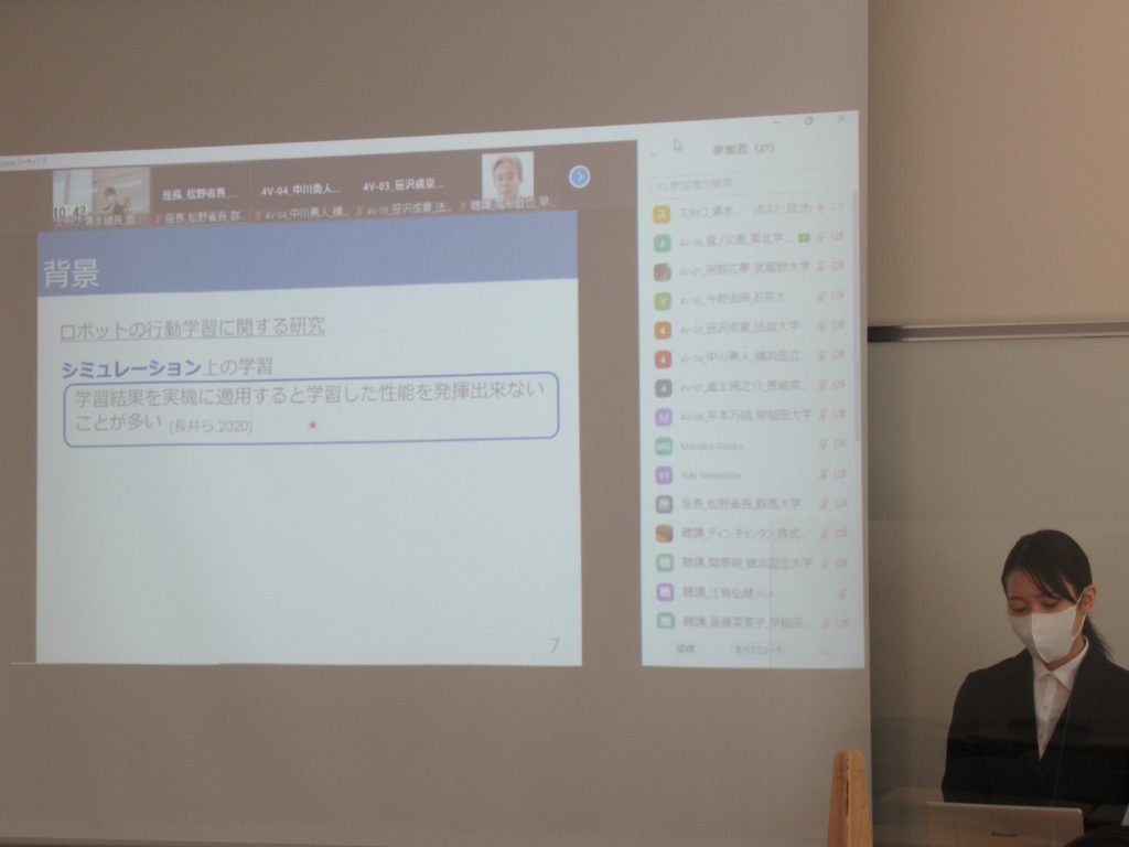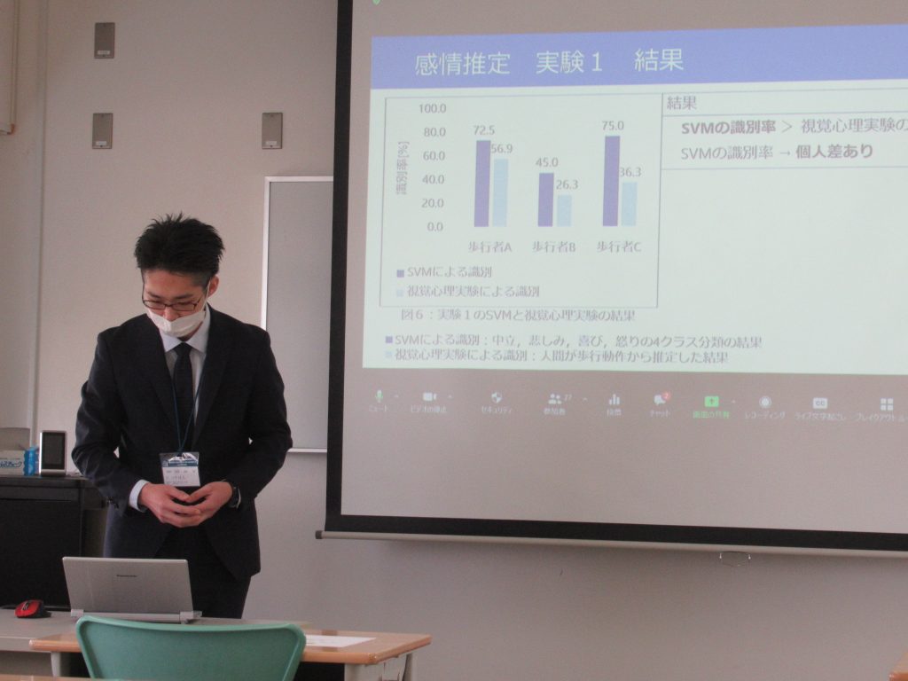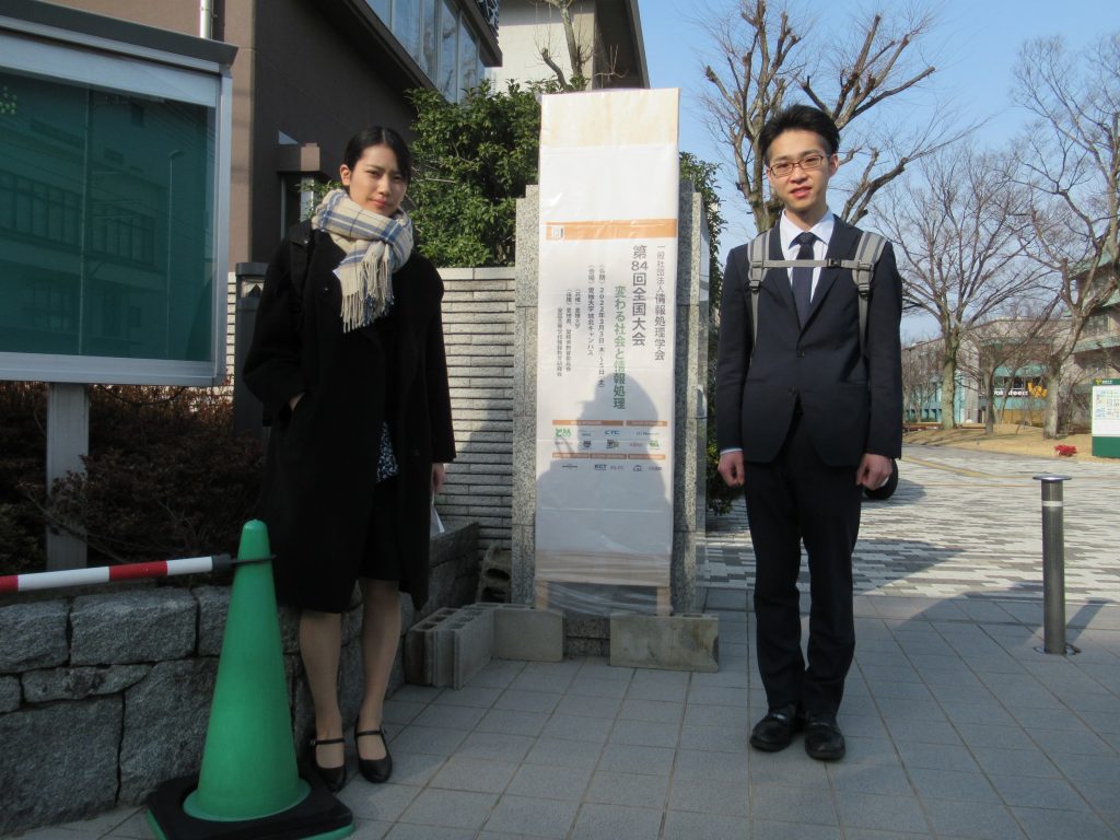 情報処理学会第84回全国大会(3/3~5,愛媛大学)にて,大学院生の川崎君と菅ノ又さんが発表しました.大会は現地参加とオンライン参加のハイブリッド形式で開催されました.二名とも,現地(愛媛)で参加しました.発表タイトルは「ショッピングカートの加速度を用いた利用者の感情推定(川崎)」,「実ロボットによる把持物体の特徴抽出のための行動学習手法(菅ノ又)」です.