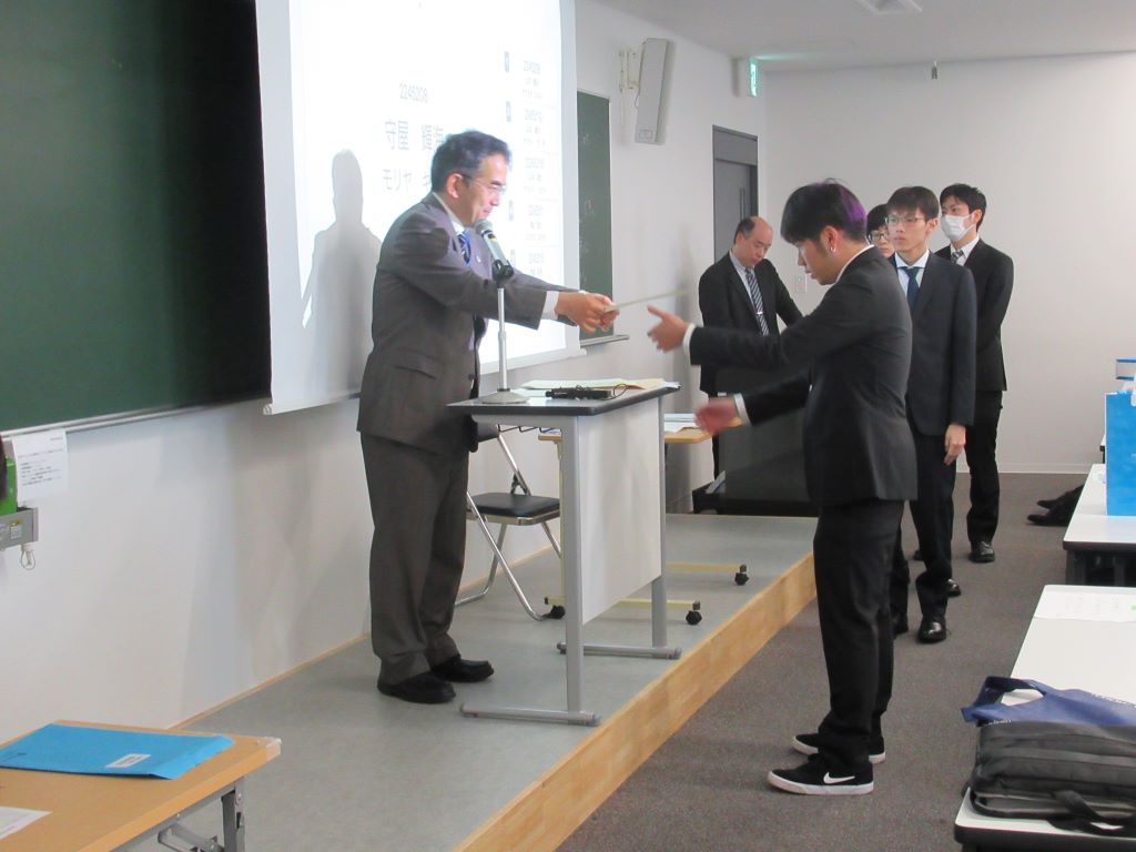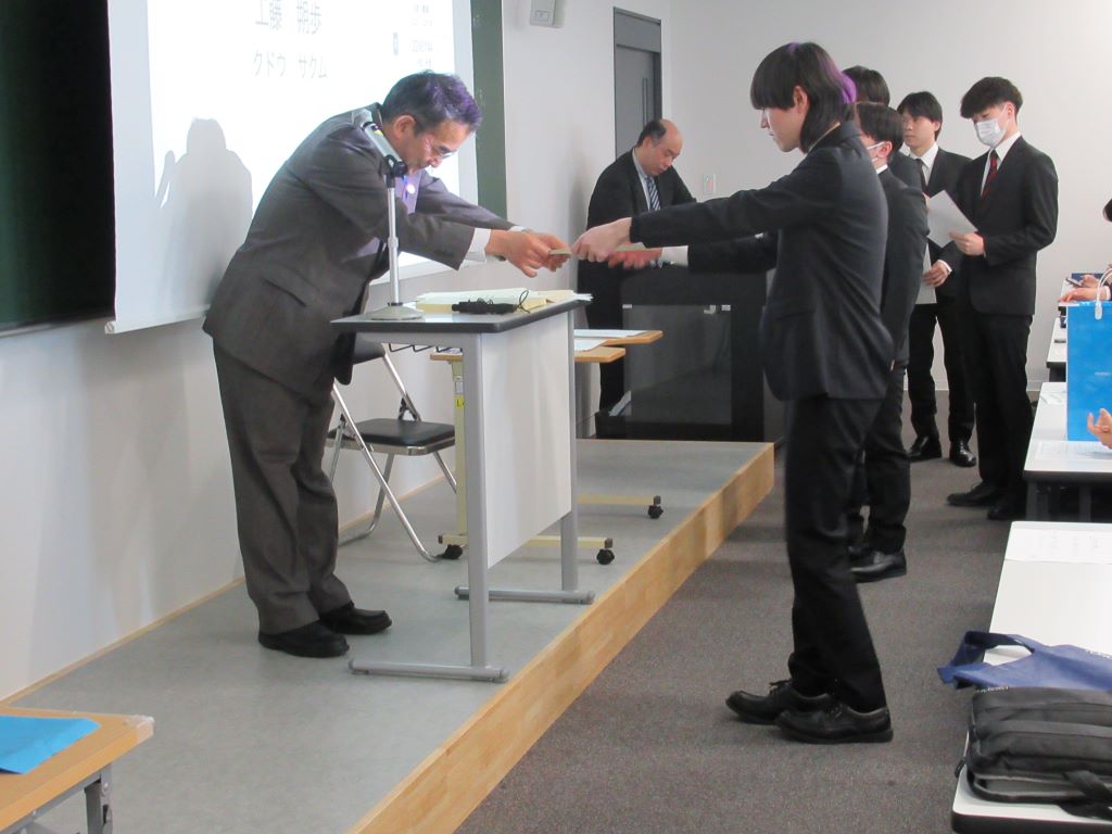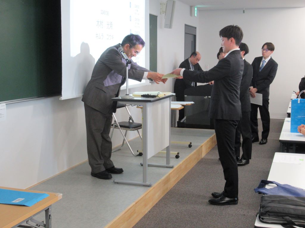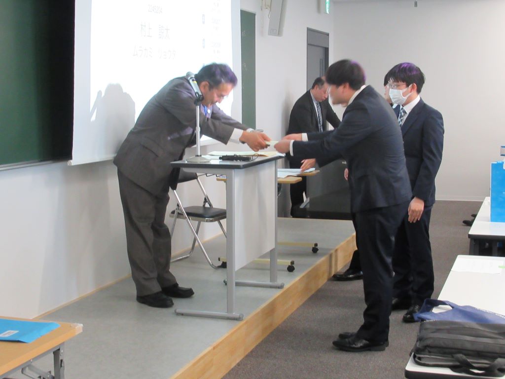 3月23日に卒業式が行われました.研究室の4年生8名が卒業しました.おめでとうございます.卒業式では,武田怜香さんが工学部の代表として卒業証書を受け取りました. また,武田さんと館山陸さんは東北学院大学卒業時学業成績優秀学生表彰も受賞しました.おめでとうございます.