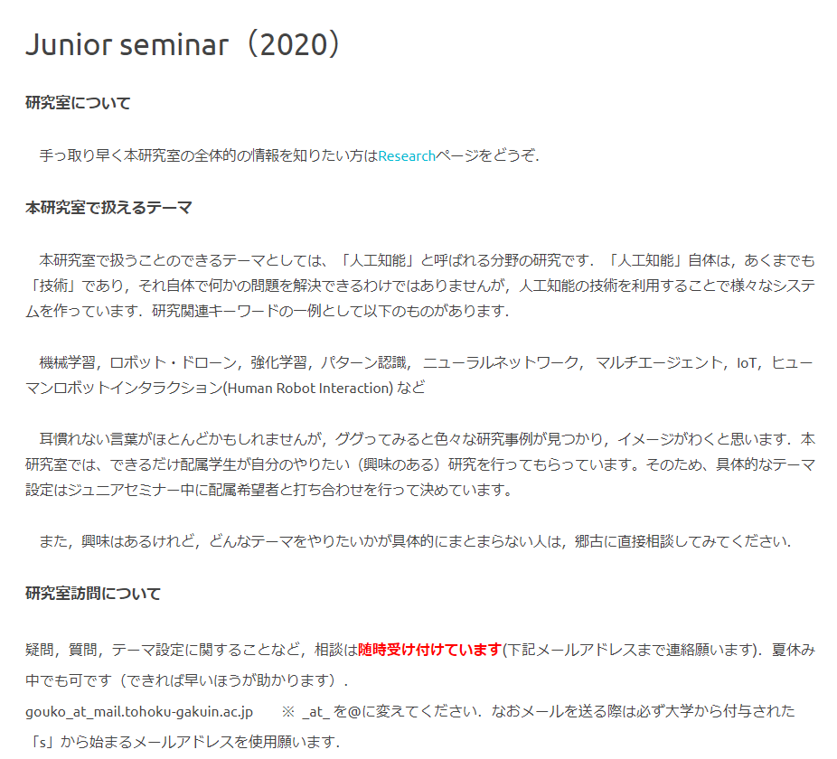 2023年度後期のジュニアセミナーのページを更新しました. Junior seminar(2023) 研究室訪問や質問は随時受け付けていますので,メールにて連絡願います.