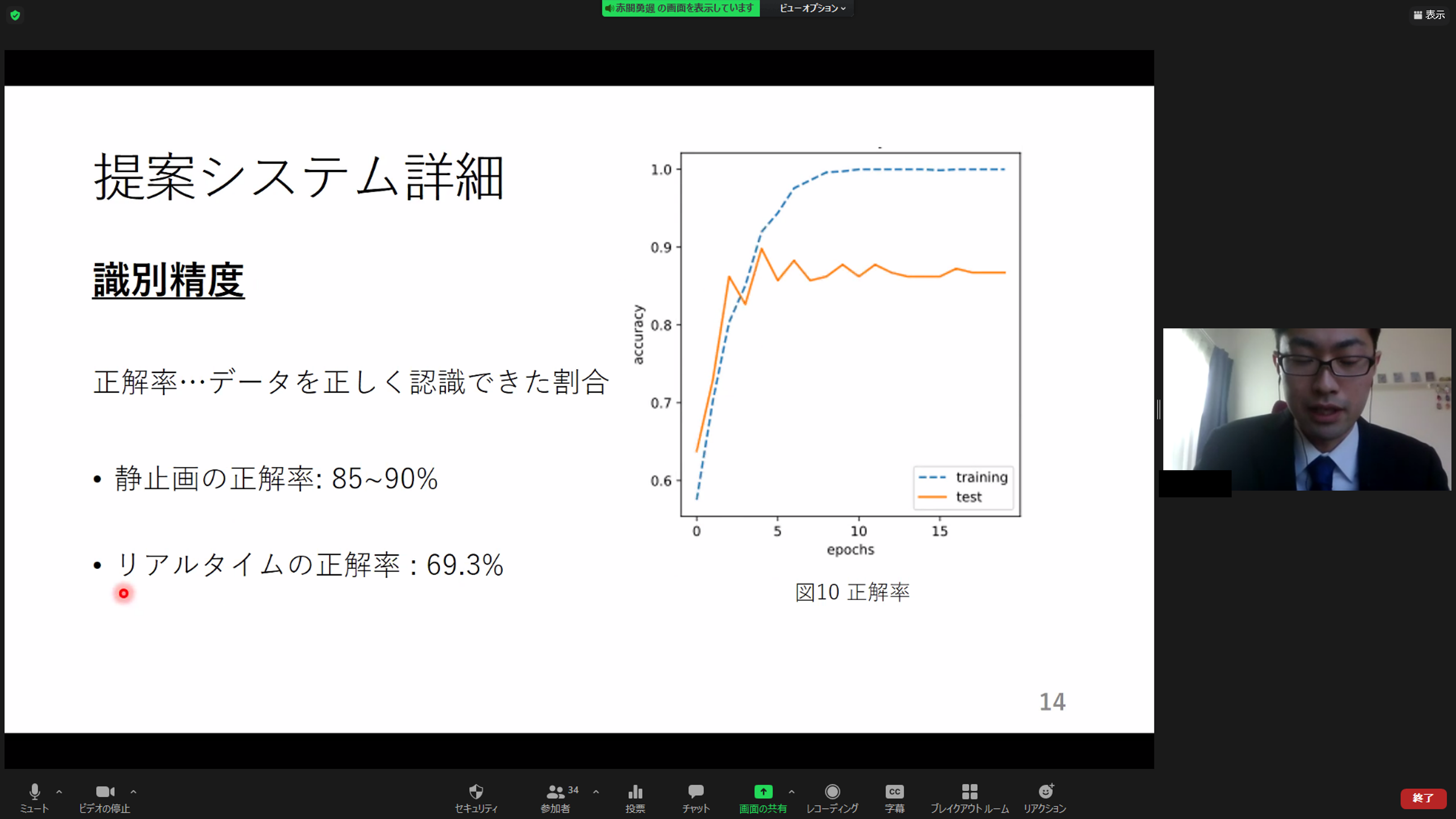 1月29日に今年度の情報基盤工学科(AI・人間情報⼯学系)卒業研究発表会が開催されました。 本研究室からは、全10件の発表を行いました。今年度も新型コロナウイルスの影響のため、オンラインでの開催となりました。お疲れ様でし… 続きを読む »