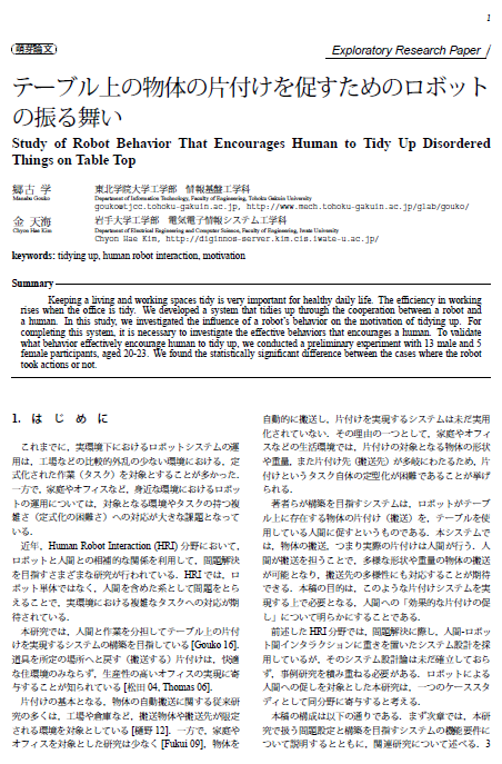 岩手大学の金先生との共同研究をまとめた下記論文の採録が決定しました. 論文タイトル:Between Exploration and Exploitation in Motor Babbling 著者:Chyon Hae … 続きを読む »