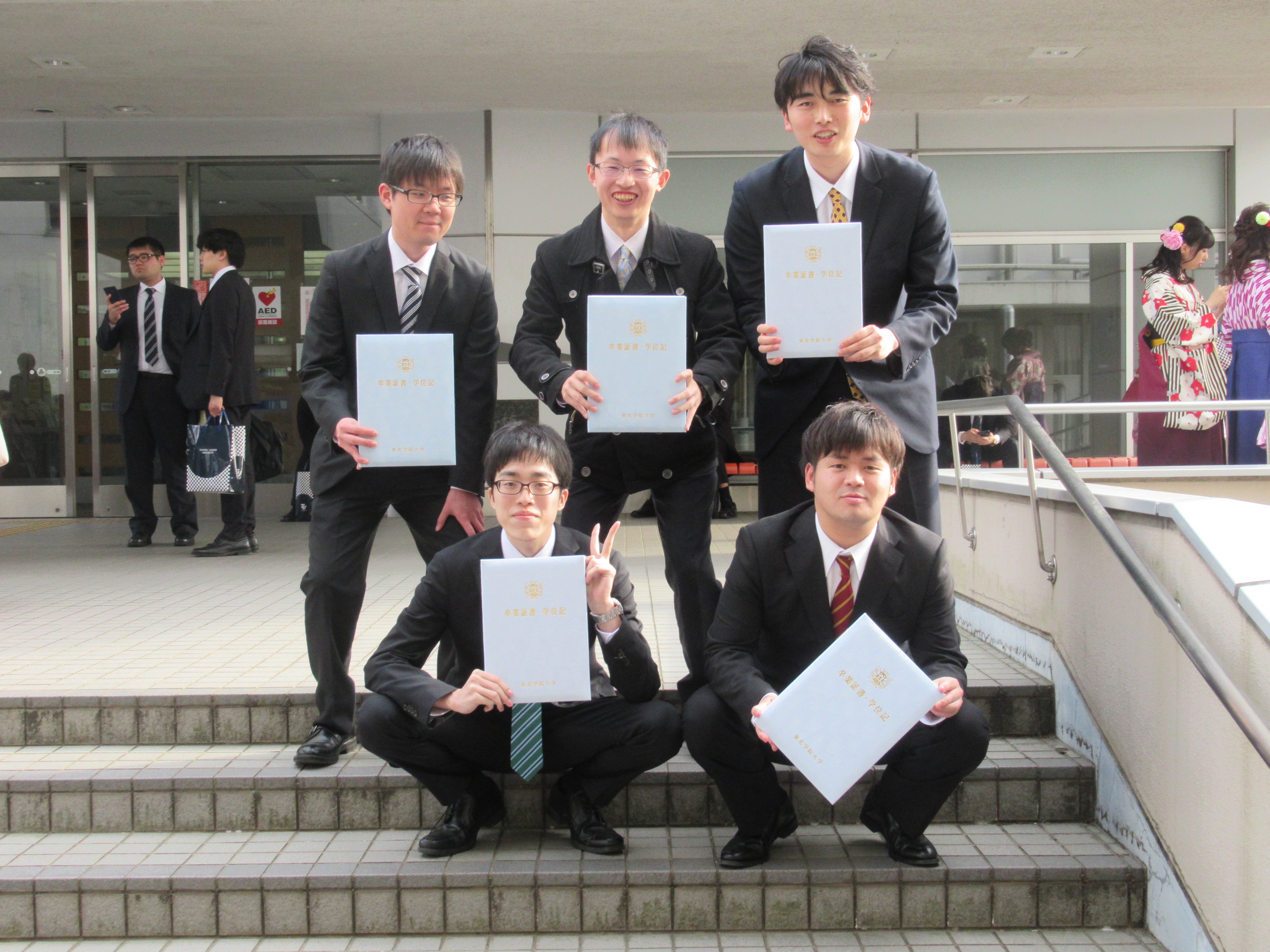 3月26日に卒業式が行われました.研究室の4年生11名と大学院生2名が卒業しました. おめでとうございます. 卒業式では,石墨渚沙さんが工学部の代表として卒業証書を受け取りました. また,石墨さんは日本機械学会畠山賞およ… 続きを読む »