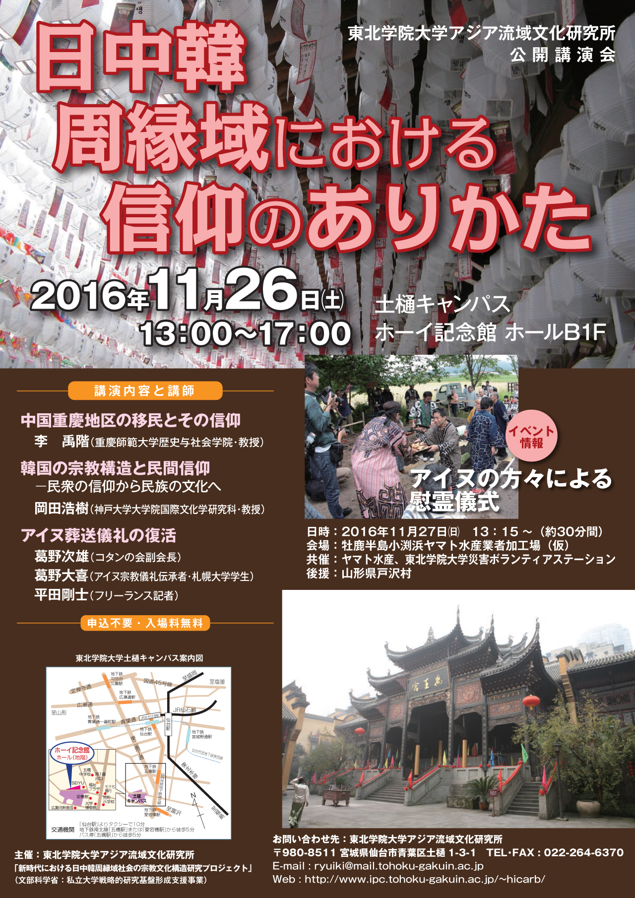 - 東北学院大学アジア流域文化研究所「新時代における日中韓周縁域社会の宗教文化構造研究」プロジェクト(文部科学省私立大学戦略的研究基盤形成支援事業)
